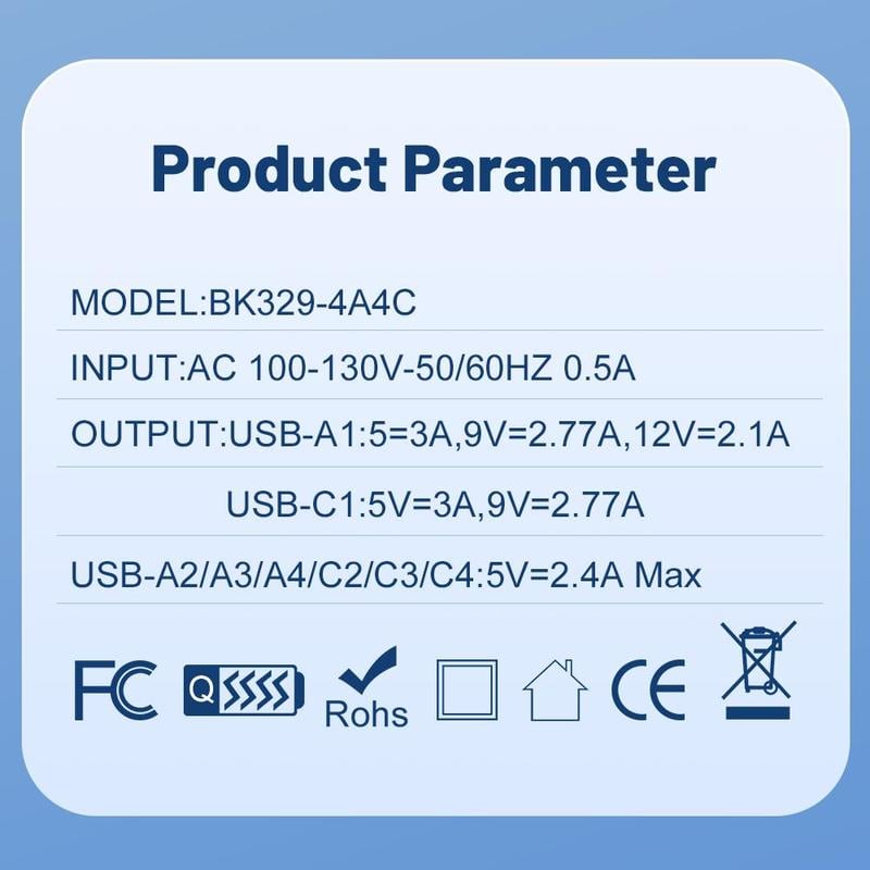 8-Port Fast Charging USB Hub 4 USB-CFallFreshness& 4 USB-A Portable Smart Charger