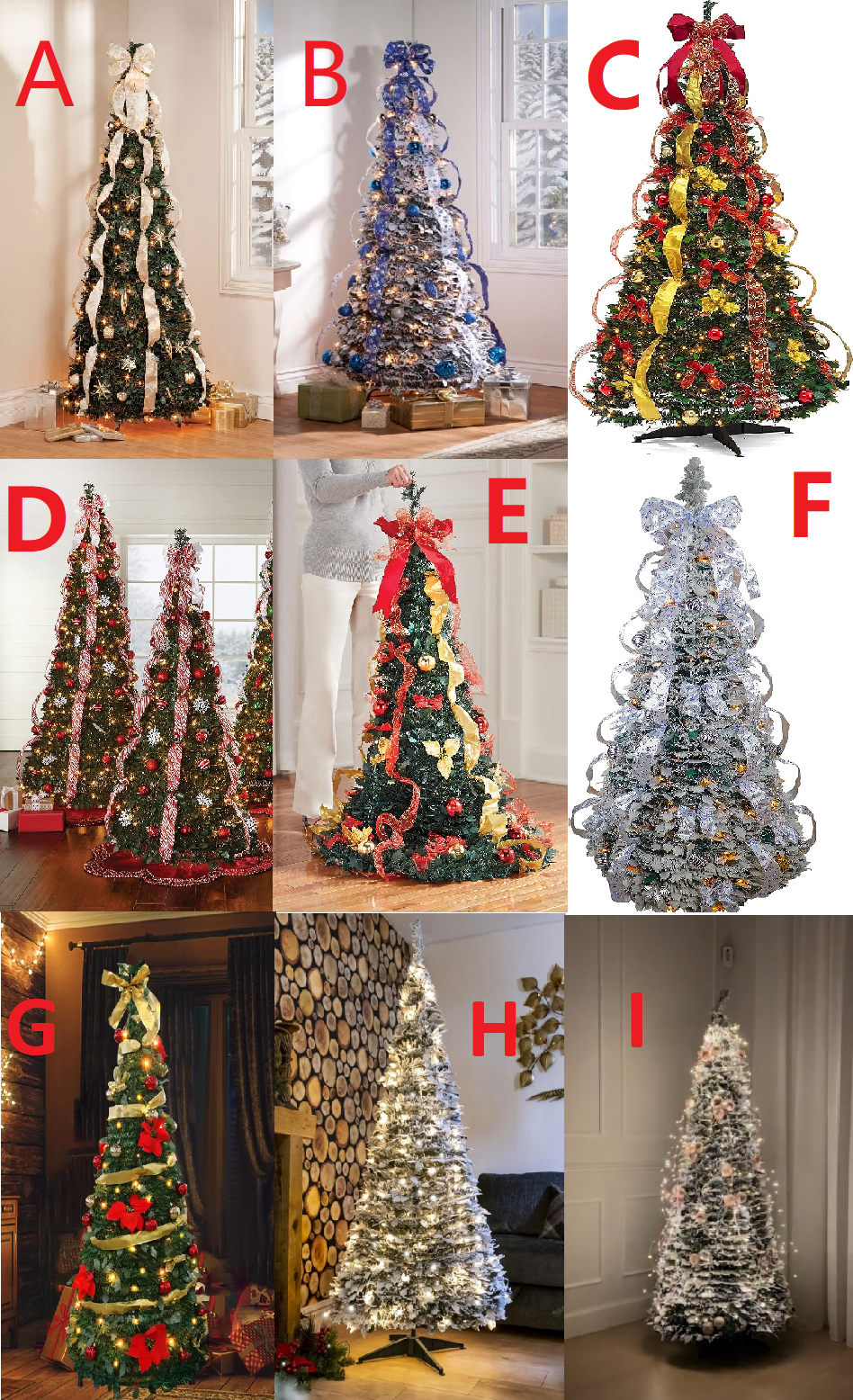 Graced with exclusive themes, hand-chosen by our in-house designers, the realistic artificial Christmas trees pull up easily with everything in place: lights, ornaments, ribbon and 1 beautiful bow topper. Simply place tree in the sturdy plastic stand, pull it up and plug it in.