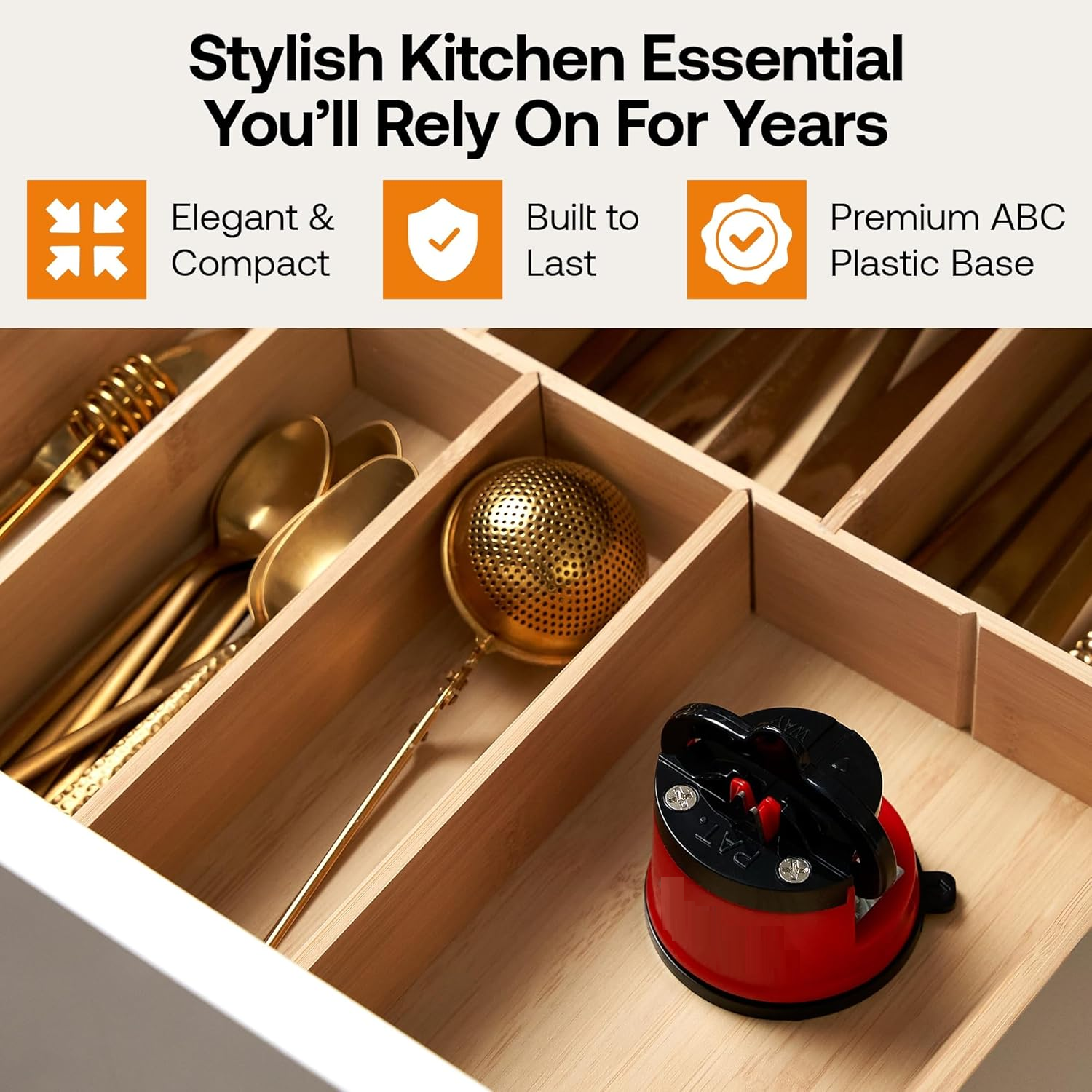 - Compact, Convenient, and Clutter-Free: Takes up minimal space and stores easily in any drawer. No cords, no batteries, no bulky equipment—just simple, powerful sharpening that’s always within reach.