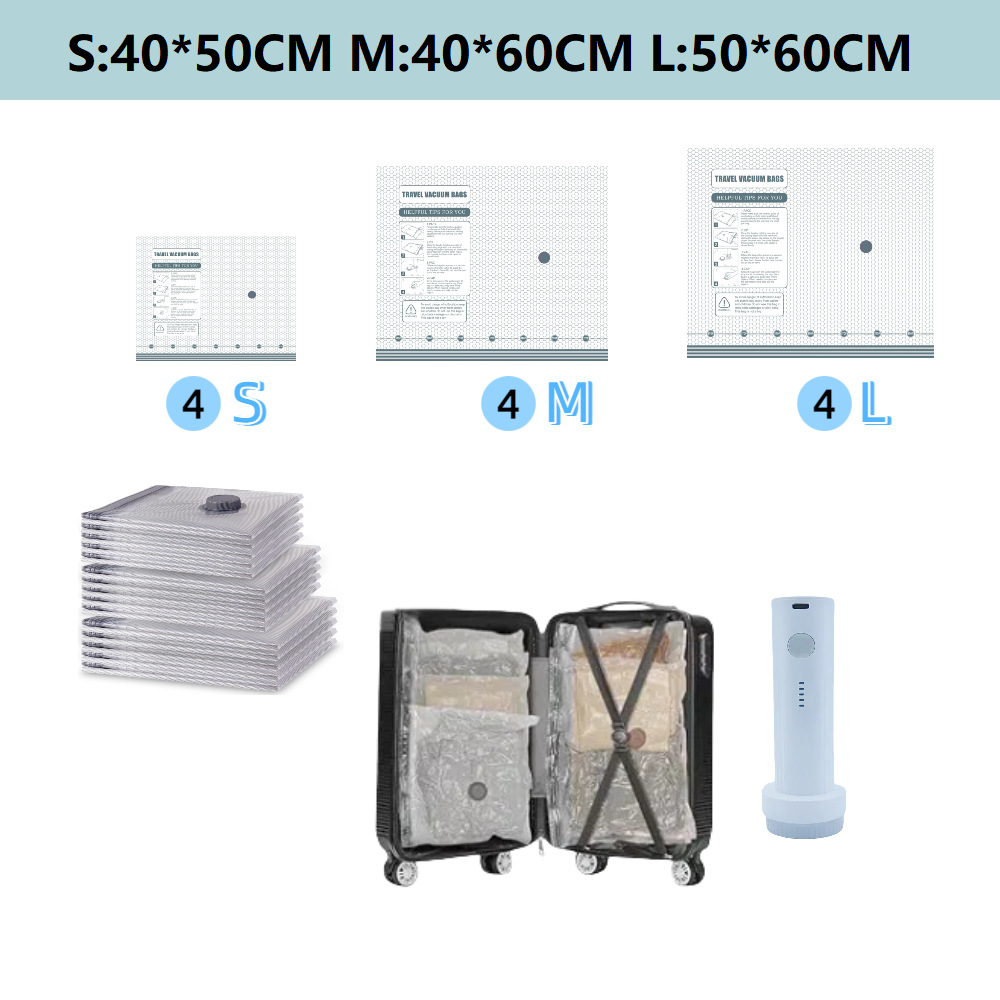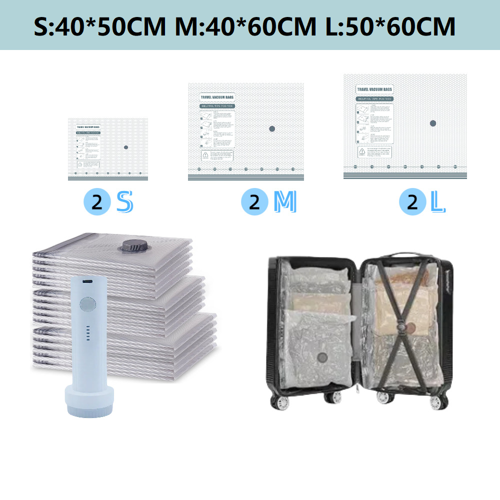 ✈️ Cordless Travel Vacuum Storage Compression Bag Set – Pack Smarter, Travel Lighter! 🎒